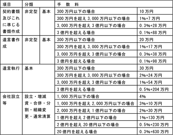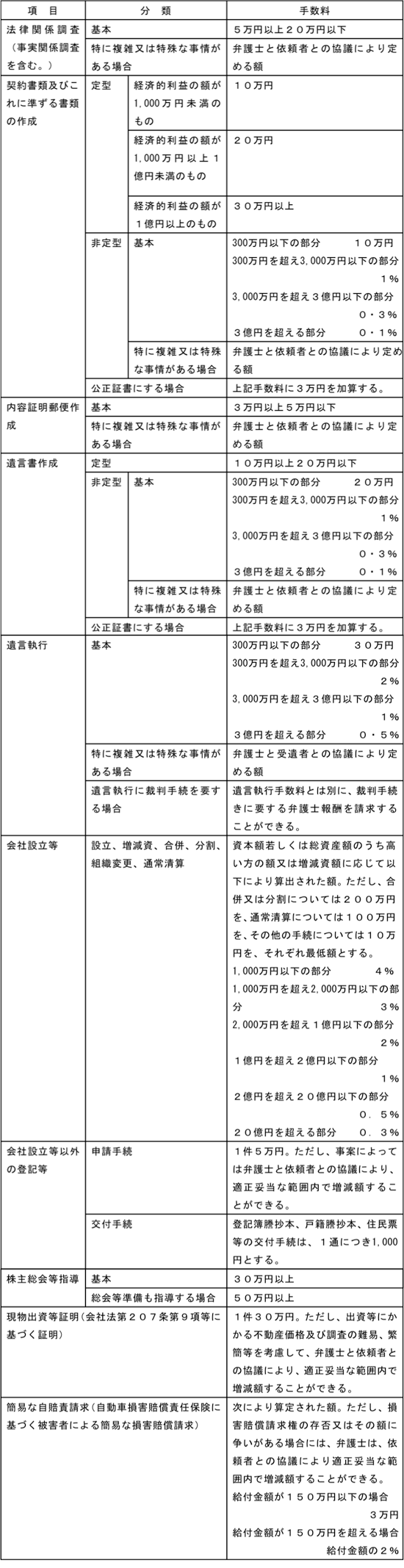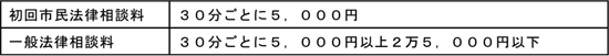 (事件の内容により、30%の範囲内で増減額することができる。着手金の最低額は5万円。)